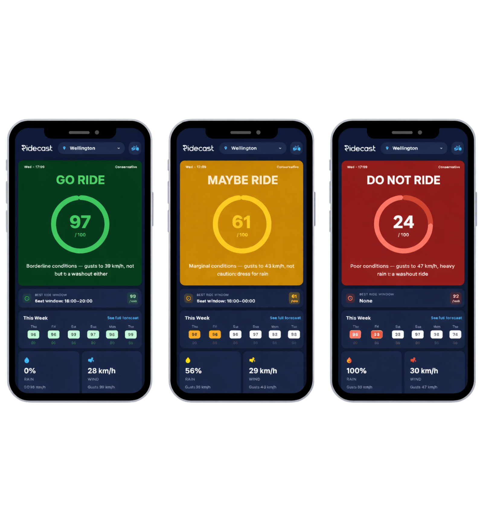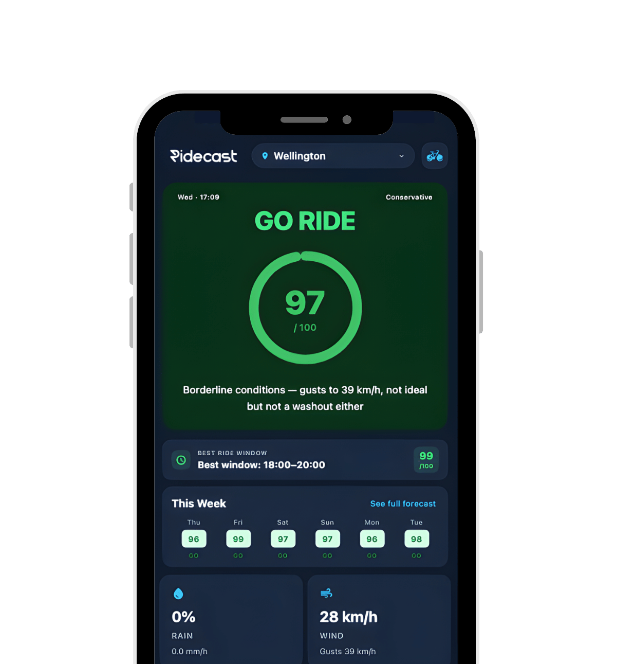 RideCast cuts through the noise and tells you one thing: Should you ride or not?